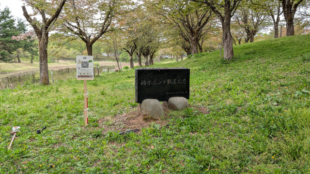 湖岸の揚水ポンプ設置記念碑の隣に設置してあります!